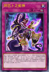 ①:这张卡发动后变成通常怪兽(爬虫类族·地·4星·攻1600/守1800)在怪兽区域特殊召唤(也当作陷阱卡使用)。那之后,可以从卡组把「阿匹卜之蛇神」以外的1张「阿匹卜」陷阱卡在自己场上盖放。这个效果盖放的卡在盖放的回合也能发动。