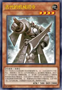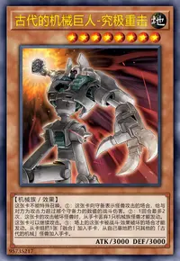 选择手卡1张名字带有「古代的机械」的怪兽卡。把墓地中合计为选择的卡2倍等级数量的名字带有「古代的机械」的卡从游戏中除外。选择的卡在这个回合召唤时不需要祭品。