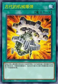 名字带有「古代的机械」的怪兽才能装备。装备怪兽的攻击力上升600。这张卡被破坏送去墓地时,给与对方基本分600分伤害。