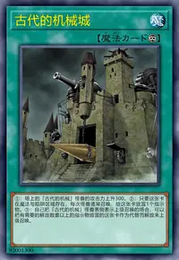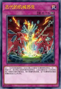 ①:自己场上有「古代的机械」怪兽存在的场合,丢弃1张手卡才能发动。从卡组选1张魔法卡在自己场上盖放。这个效果盖放的卡在这个回合不能发动。
