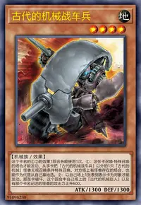 ①:这张卡召唤·特殊召唤的场合才能发动。从手卡把「古代的机械战车兵」以外的1只「古代的机械」怪兽无视召唤条件特殊召唤。对方场上有怪兽存在的场合,也能作为代替从自己墓地选。