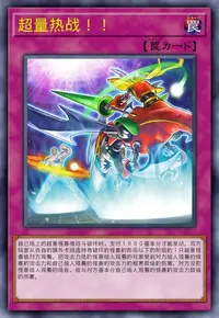 自己场上的超量怪兽被战斗破坏时,支付1000基本分才能发动。双方玩家从各自的额外卡组选持有破坏的怪兽的阶级以下的阶级的1只超量怪兽给对方观看。把攻击力低的怪兽给人观看的玩家受到对方给人观看的怪兽的攻击力和自己给人观看的怪兽的攻击力的相差数值的伤害。对方没把怪兽给人观看的场合,给与对方基本分自己给人观看的怪兽的攻击力数值的伤害。