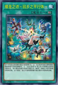 ②:从自己的手卡·场上把1只怪兽送去墓地才能发动。原本属性和那只怪兽不同的1只「耀圣」怪兽从卡组守备表示特殊召唤。这个回合,自己不是同调怪兽不能从额外卡组特殊召唤。