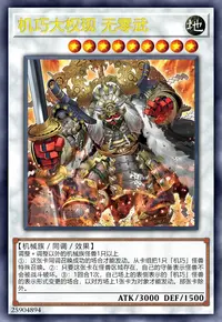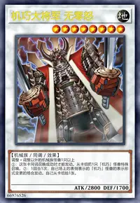 这张卡可以攻击的场合必须作出攻击。场上表侧表示存在的这张卡被选择作为攻击对象时,这张卡的表示形式变更。这张卡的战斗让自己受到战斗伤害时,自己场上表侧表示存在的名字带有「机巧」的全部怪兽的攻击力·守备力直到结束阶段时上升800。此外,这张卡只要在场上表侧攻击表示存在不会被战斗破坏。