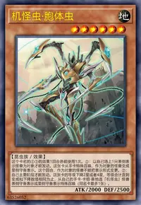 ②:表侧表示的这张卡因对方的效果从场上离开的场合或者被战斗破坏的场合,以自己墓地2只「机怪虫」怪兽为对象才能发动(同名卡最多1张)。那些怪兽里侧守备表示特殊召唤。