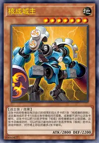 这张卡的控制者在每次自己的结束阶段从手卡把1张「核成兽的钢核」送去墓地。或者不送去墓地让这张卡破坏。这张卡可以把1只名字带有「核成」的怪兽解放作上级召唤。这张卡攻击守备表示怪兽时,若攻击力超过那个守备力,给与对方基本分那个数值的战斗伤害。这张卡不会被陷阱卡的效果破坏。