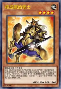 这张卡的控制者在每次自己的结束阶段从手卡把1张「核成兽的钢核」送去墓地或把手卡1只兽战士族怪兽给对方观看。或者都不进行让这张卡破坏。1回合1次,可以把手卡1张「核成兽的钢核」给对方观看,从自己卡组把「核成原始骑士」以外的1只4星以下的名字带有「核成」的怪兽特殊召唤。