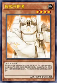 从卡组把「核成兽的金刚核」以外的1张名字带有「核成」的卡加入手卡。此外,自己的主要阶段时把墓地的这张卡从游戏中除外才能发动。这个回合,自己场上的名字带有「核成」的怪兽不会被破坏。