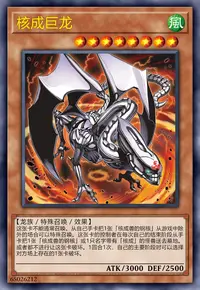 这张卡的控制者在每次自己结束阶段从手卡把1张「核成兽的钢核」送去墓地或把手卡1只龙族怪兽给对方观看。或者都不进行让这张卡破坏。