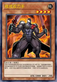 这张卡的控制者在每次自己的结束阶段从手卡把1张「核成兽的钢核」送去墓地或把手卡1只战士族怪兽给对方观看。或者都不进行让这张卡破坏。这张卡战斗破坏对方怪兽的场合,只有1次可以继续攻击。