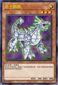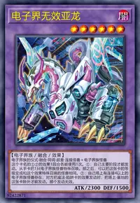 ①:对方场上有怪兽存在的场合才能发动。这张卡从手卡特殊召唤。那之后,从卡组选1只「电子龙」特殊召唤或当作装备魔法卡使用给这张卡装备。这个回合,自己不是机械族怪兽不能特殊召唤。