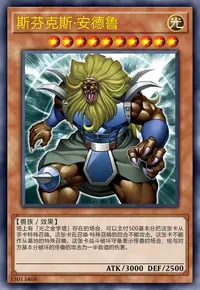 这张卡不能通常召唤。自己场上的「斯芬克斯·安德鲁」和「斯芬克斯·迪蕾雅」同时被破坏时,支付500基本分才能从手卡或者卡组特殊召唤。这张卡特殊召唤成功时,可以支付500基本分,直到结束阶段结束时这张卡的攻击力上升3000。