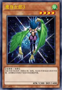 这张卡的卡名当作「鹰身女郎」使用。和这张卡发生战斗的对方怪兽,此怪兽在对方的2个回合内攻击宣言不能。