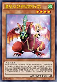 ●1只:只要这张卡在场上表侧表示存在,对方不能选择自己场上存在的除「鹰身女妖的宠物仔龙」以外的名字带有「鹰身」的怪兽作为攻击对象。