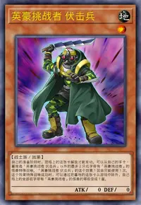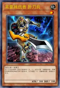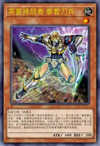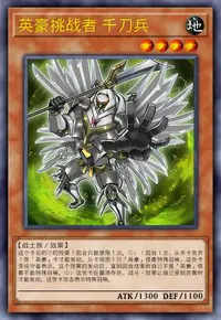 这张卡召唤成功时,可以从自己的手卡·墓地选1只「英豪挑战者 双长枪兵」表侧守备表示特殊召唤。这张卡不能作为同调素材。此外,把这张卡作为超量素材的场合,不是战士族怪兽的超量召唤不能使用。