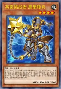 ①:这张卡用「英豪挑战者」怪兽的效果特殊召唤成功时才能发动。从卡组把1只「英豪挑战者」怪兽加入手卡。
