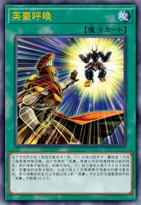 ①:1回合1次,从手卡丢弃1张「英豪」卡才能发动。从卡组把1只「英豪」怪兽特殊召唤,这张卡变成守备表示。这个效果的发动后,直到回合结束时自己不是「英豪」怪兽不能特殊召唤。
