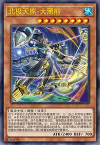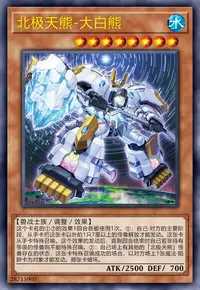 ①:把这张卡和自己的手卡·场上1只8星「北极天熊」怪兽解放才能发动。把1只7星「北极天熊」同调怪兽无视召唤条件从额外卡组特殊召唤。这个效果特殊召唤的怪兽得到以下效果。