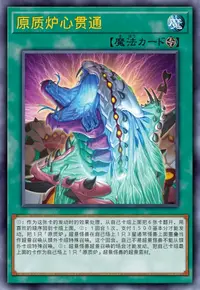 ①:把这张卡1个超量素材取除才能发动。从卡组把1只「原质炉」怪兽特殊召唤或把1张「原质炉」魔法·陷阱卡加入手卡。