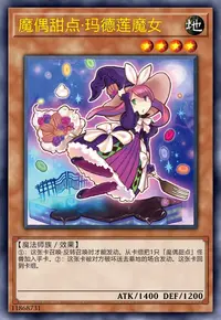 这张卡被对方破坏送去墓地时,这张卡回到卡组。1回合1次,选择自己场上表侧攻击表示存在的1只名字带有「魔偶甜点」的怪兽和对方场上表侧攻击表示存在的1只怪兽才能发动。选择的2只怪兽变成表侧守备表示,直到下次的对方回合结束时,选择的怪兽不能把表示形式变更。