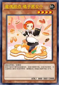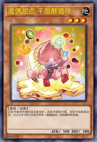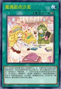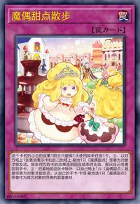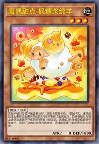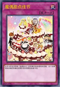 这张卡被对方破坏送去墓地时,这张卡回到卡组。这张卡召唤成功时,场上有这张卡以外的名字带有「魔偶甜点」的怪兽存在的场合,可以从卡组把1张场地魔法卡加入手卡。