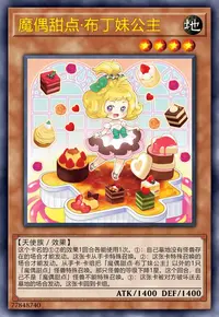 ②:这张卡特殊召唤的场合才能发动。从手卡·卡组把「魔偶甜点·布丁妹公主」以外的1只「魔偶甜点」怪兽特殊召唤。那只怪兽的等级下降1星。这个回合,自己不是「魔偶甜点」怪兽不能特殊召唤。