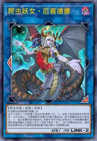 ①:自己场上有爬虫类族·暗属性怪兽存在的场合才能发动。这张卡从手卡特殊召唤。对方场上有攻击力0的怪兽存在的场合,可以再把最多有那个数量的「爬虫妖」怪兽从手卡特殊召唤。