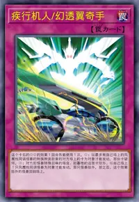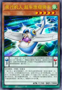 ①:这张卡表侧加入额外卡组的场合,若自己场上的风属性同调怪兽的种族是2种类以上则能发动。从卡组把1张「疾行机人」魔法·陷阱卡送去墓地。