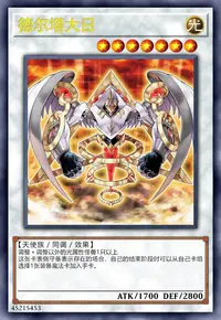 这张卡同调召唤成功时,场上表侧表示存在的通常召唤的怪兽全部破坏。1回合1次,可以选择自己墓地存在的1只名字带有「大日」的怪兽当作装备卡使用给这张卡装备。效果怪兽的效果发动时,可以把这张卡装备的1张装备卡送去墓地让那个发动无效并破坏。
