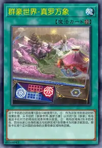 ①:作为这张卡的发动时的效果处理,从卡组把「群豪世界-真罗万象」以外的1张「群豪」场地魔法卡在对方的场地区域表侧表示放置。