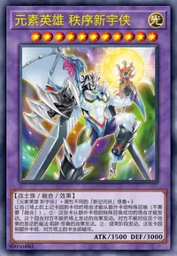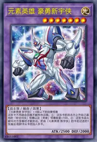 ②:这张卡战斗破坏对方怪兽时才能发动。把有「元素英雄 新宇侠」的卡名记述的1张魔法·陷阱卡从卡组加入手卡。