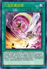 ①:自己场上有「六武众」同调怪兽3种类以上存在的场合才能发动(为这张卡发动而需要的怪兽种类改成自己场上的武士道指示物每有6个则少要1种类的数量)。对方场上的卡全部破坏。