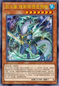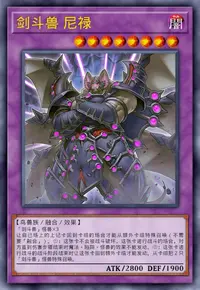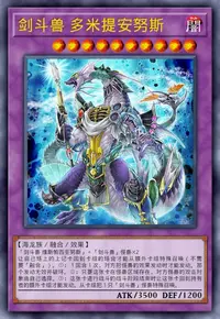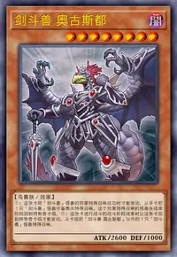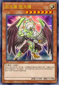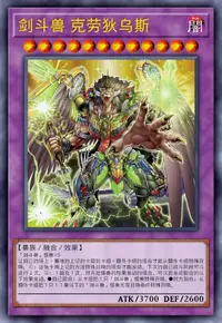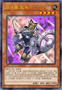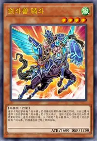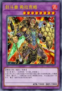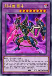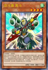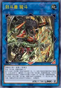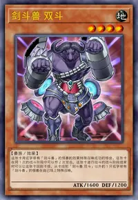 这张卡用名字带有「剑斗兽」的怪兽的效果特殊召唤成功的场合,这张卡在同1次的战斗阶段中可以作2次攻击。这张卡进行战斗的战斗阶段结束时可以让这张卡回到卡组,从卡组把「剑斗兽 双斗」以外的1只名字带有「剑斗兽」的怪兽在自己场上特殊召唤。