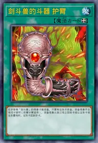 名字带有「剑斗兽」的怪兽才能装备。装备怪兽进行攻击的伤害步骤结束时,把场上1张魔法或者陷阱卡破坏。装备怪兽从自己场上回到卡组让这张卡被送去墓地时,这张卡回到手卡。