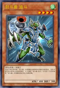 这张卡用名字带有「剑斗兽」的怪兽的效果特殊召唤成功的场合,这张卡进行战斗的战斗阶段结束时,从卡组把「剑斗兽 追斗」以外的2只名字带有「剑斗兽」的怪兽在自己场上特殊召唤。