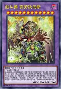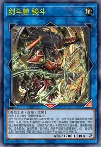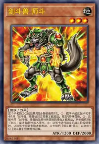 这张卡用名字带有「剑斗兽」的怪兽的效果特殊召唤成功的场合,这张卡在同1次的战斗阶段中可以作2次攻击。这张卡进行战斗的战斗阶段结束时可以让这张卡回到卡组,从卡组把「剑斗兽 双斗」以外的1只名字带有「剑斗兽」的怪兽在自己场上特殊召唤。