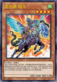 这张卡用名字带有「剑斗兽」的怪兽的效果特殊召唤成功时,把场上1只表侧表示怪兽破坏。这张卡进行战斗的战斗阶段结束时可以让这张卡回到卡组,从卡组把「剑斗兽 鱼斗」以外的1只名字带有「剑斗兽」的怪兽在自己场上特殊召唤。