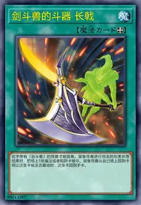 名字带有「剑斗兽」的怪兽才能装备。装备怪兽进行攻击的伤害步骤结束时,把场上1张魔法或者陷阱卡破坏。装备怪兽从自己场上回到卡组让这张卡被送去墓地时,这张卡回到手卡。