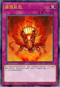 场上守备表示存在的名字带有「废铁」的怪兽被攻击的场合,那次伤害计算时才能发动。被攻击的名字带有「废铁」的怪兽的守备力上升2000,战斗阶段结束时破坏。