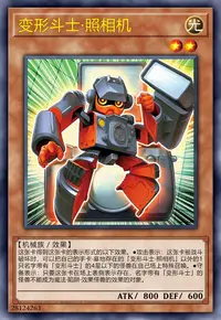 ●攻击表示:这张卡被战斗破坏时,可以把自己的手卡·墓地存在的「变形斗士·照相机」以外的1只名字带有「变形斗士」的4星以下的怪兽在自己场上特殊召唤。