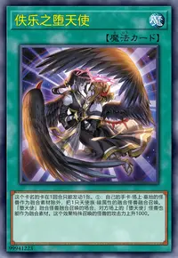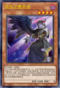 ①:这张卡召唤·特殊召唤的场合才能发动。从手卡·卡组选除「悦乐之堕天使」外的2只等级不同的「堕天使」怪兽,那之内的1只在对方场上守备表示特殊召唤,另1只加入自己手卡。这个效果的发动后,直到回合结束时自己不能把天使族以外的怪兽的效果发动。