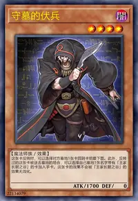 这张卡的守备力上升自己墓地的名字带有「守墓」的怪兽数量×200的数值。只要这张卡在场上表侧表示存在,名字带有「守墓」的怪兽以外的墓地发动的效果怪兽的效果无效化。此外,「王家长眠之谷」在场上存在的场合,对方不能把场地魔法卡发动,场地魔法卡不会被对方的效果破坏。