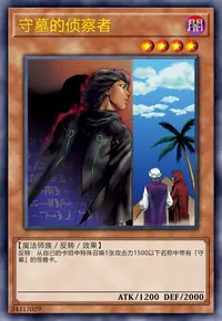 这张卡从自己场上送去自己墓地时,从自己的卡组把1只守备力1500以下的名字带有「守墓」的怪兽加入手卡。