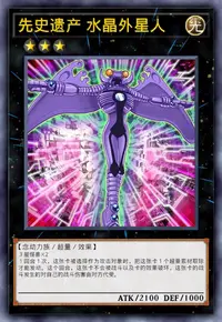只要这张卡在自己场上表侧表示存在,每次对方场上有怪兽特殊召唤,给那个时候特殊召唤的怪兽放置1个A指示物。有A指示物放置的怪兽和名字带有「外星」的怪兽战斗的场合,每有1个A指示物攻击力·守备力下降300。