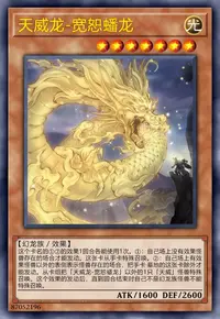 ②:自己场上有效果怪兽以外的表侧表示怪兽存在的场合,把手卡·墓地的这张卡除外才能发动。从卡组把「天威龙-宽恕蟠龙」以外的1只「天威」怪兽特殊召唤。这个效果的发动后,直到回合结束时自己不是幻龙族怪兽不能特殊召唤。