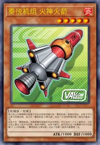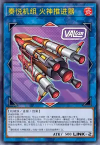 自己场上的表侧表示怪兽不存在的场合或者只有「奏悦机组」怪兽的场合,这张卡可以从手卡特殊召唤。自己对「奏悦机组 火神火箭」的这个方法的特殊召唤1回合只能有1次。