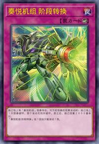 从自己的卡组·额外卡组·墓地把同名卡不在自己场上存在的1只「奏悦机组」怪兽特殊召唤。这张卡的发动后,直到回合结束时自己不是攻击力在1500以下的机械族怪兽不能从额外卡组特殊召唤。