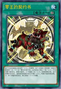 ①:以「零王的契约书」以外的自己场上1张「DD」卡为对象才能发动。那张卡破坏,从卡组把1只「DD」怪兽特殊召唤。这个效果的发动后,直到回合结束时自己不是「DD」怪兽不能特殊召唤。