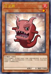 这张卡不能解放,也不能作为融合·同调·超量召唤的素材。场上的这张卡被破坏时,这张卡的控制者受到500分伤害。「红尘妖」在自己场上只能有1只表侧表示存在。