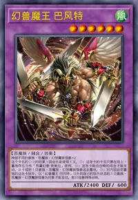③:对方回合把墓地的这张卡除外,以「幻兽魔王 巴风特」以外的自己的除外状态的1只兽族·恶魔族·幻想魔族怪兽为对象才能发动。那只怪兽特殊召唤。